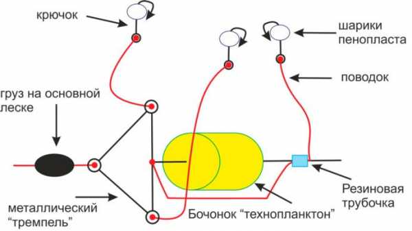 - В случае, если покупной технопланктон плохо растворяется в воде, то замочите предварительно один бочонок. А когда будете перезакидывать снасть, установите его.