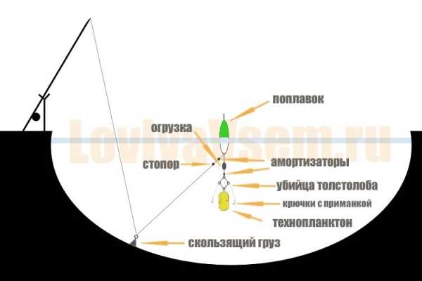 В итоге получается оснастка для ловли толстолоба с поверхности.