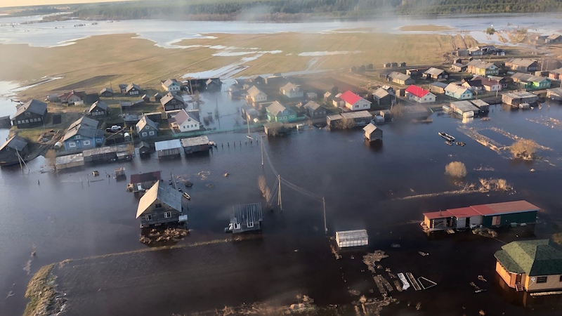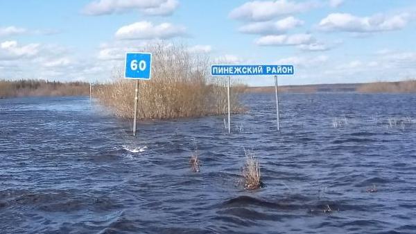 Из-за выпавших осадков на юге бассейна реки Пинеги прохождение весеннего половодья происходит при высоких уровнях воды с превышением нормы на 200–250 см.