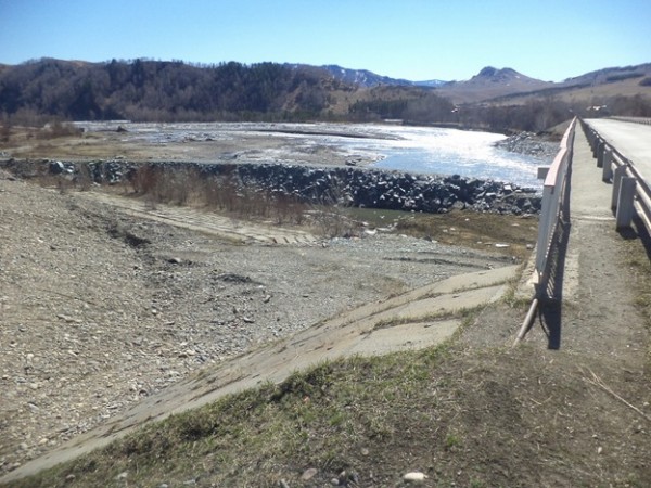 На реке Бия установлен понтонный мост. Мост очень помогает. Ведь добраться до нужного места можно быстрее.