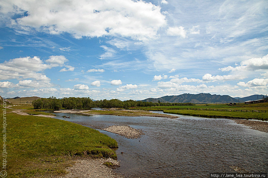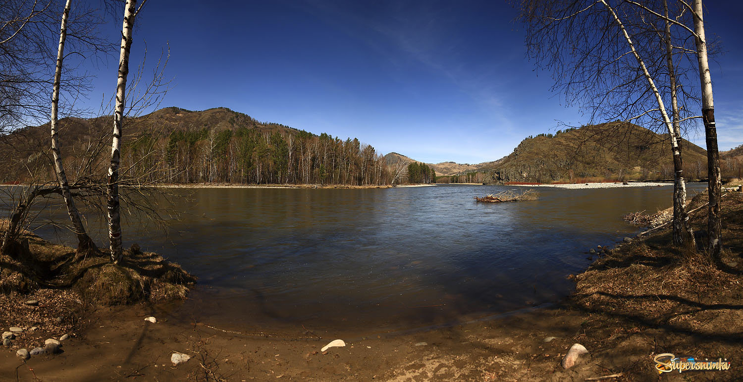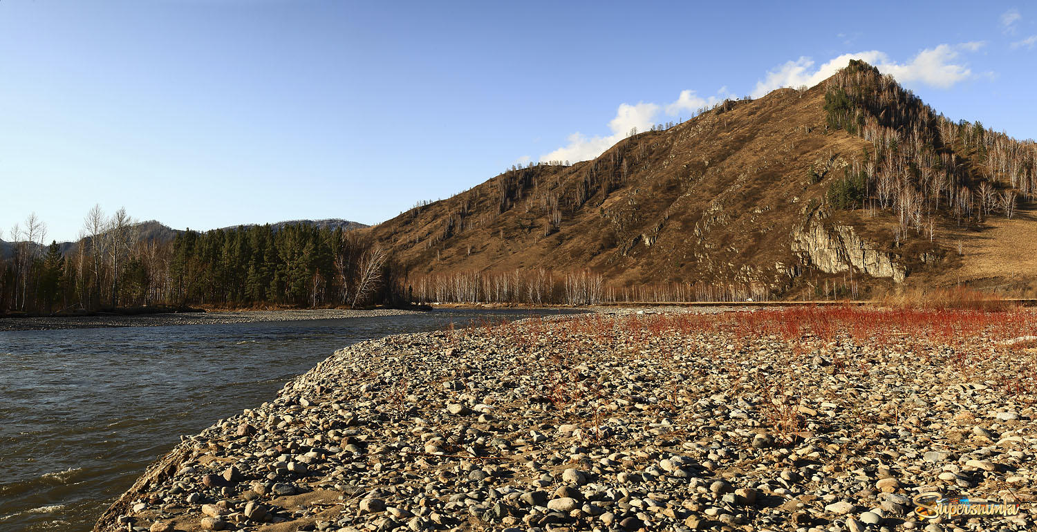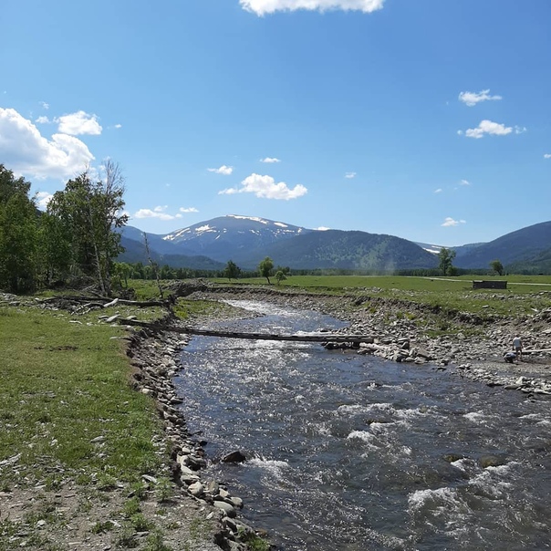 С реки открывается очень живописный и свежий вид на Горный Алтай. Вода в нем чистая и прозрачная, а берега окаймлены небольшими кустарниками.