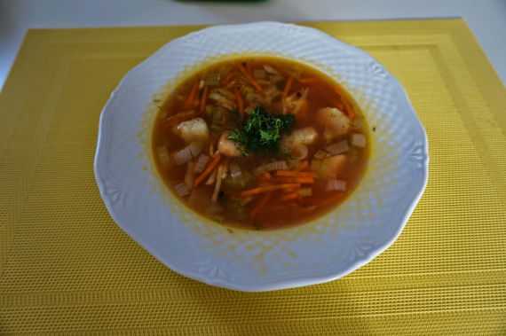 Попробуйте суп, добавьте шафран и ещё раз соль или перец, если потребуется. Подавайте сразу же в подогретых тарелках.