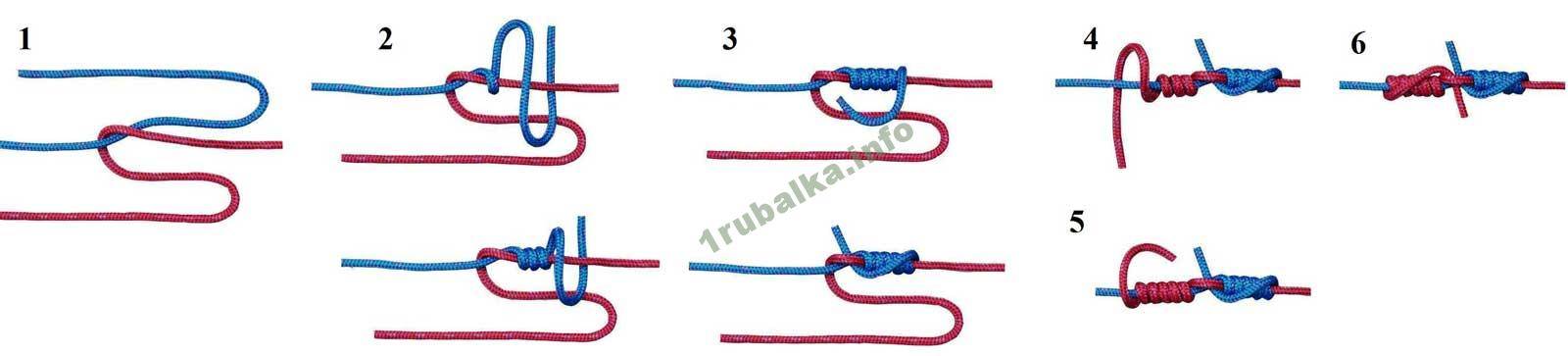 При связке таких материалов обычными узлами, шнур часто выскальзывает и узел приходит в негодность, что приводит к потере приманки и влияет на количество улова.Такой узел используется для связки шнура спиннинга с поводком из флюрокарбона или монолески. Подойдет он и для привязки шок-лидера для ловли карпа. Это довольно хорошая идея, ведь применение флюрокарбоновой, невидимой в воде, лески при ловле некоторых осторожных видов рыб бывает очень кстати.