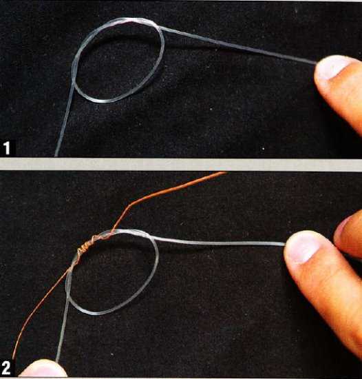 - Свободный конец несколько раз обматывается вокруг основной лески;