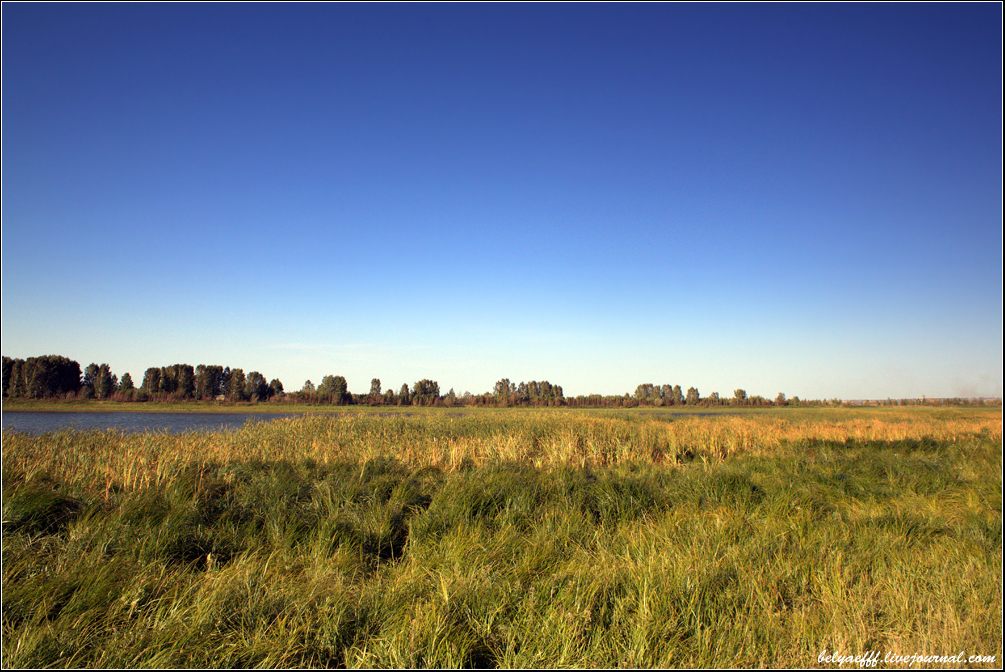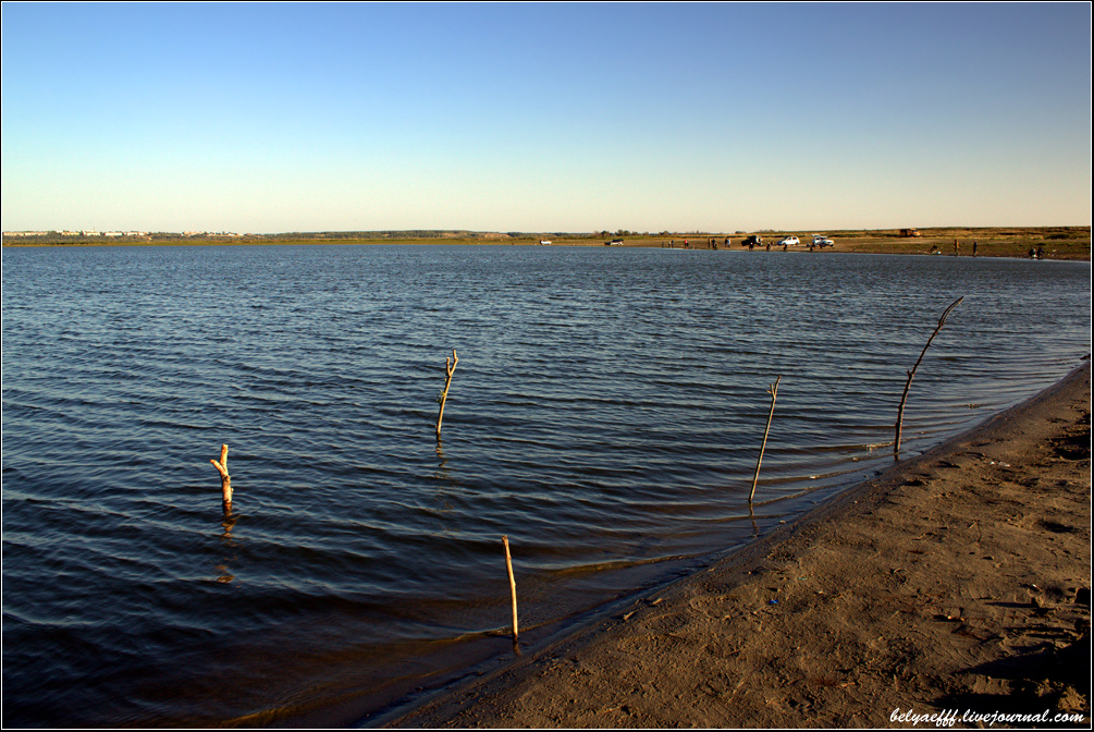 | 11:58 pm — Про Верблюжье Был в Верблюжьем. Это довольно крупная деревня в Саргатском районе Омской области, расположенная на месте старого оборонительного форпоста XVII века. От самого форпоста сейчас, понятное дело, ничего не осталось, да и старинных домов я в деревне не видел, но целью моей поездки были не архитектурные, а природные достопримечательности. Верблюжье стоит на берегу иртышской старицы, которое имеет форму буквы «О» и зовётся в народе озером Круглым. Посередине озера находится небольшой остров, густо поросший деревьями. Построек на острове нет — кроме наблюдения за многочисленными птицами делать там нечего. А птицы местных жителей не интересуют. Берега Круглого озера практически лишены растительности, лишь со стороны Иртыша, с которым озеро соединено узенькой протокой, имеются густые заросли тростника, осоки и прочей болотной травы. С Верблюжьего хорошо виден противоположный высокий берег Иртыша. Многоэтажные дома на его склонах — это посёлок Крутая горка, находящийся в полусотне километров от Омска, но, тем не менее, административно относящийся к Октябрьскому административному округу областного центра. Крутая горка знаменита тем, что на её территории находилось два секретных оборонных завода — химзавод № 3 и филиал омского завода им. Баранова. И занимались на этих заводах, ни много, ни мало, а испытанием ракетных двигателей. На заднем плане фотографии можно разглядеть высокое сооружение, похожее на башню. Это стенд для испытания ракетных двигателей, который был построен в 1960-х годах. До 1989 года здесь постоянно шли испытания практически всех ракетных двигателей, производящихся в Советском Союзе. Дело в том, что Крутогорский стенд имеет очень важную особенность — двигатель на нём устанавливается вертикально (точно так же, как и при запуске ракеты), что позволяет максимально приблизить условия испытания к реальным. Сейчас стенд законсервирован, поскольку его новые владельцы-москвичи предпочитают испытывать свои двигатели у себя, а на заводской площадке вроде как развёрнуто производство базальтового волокна. Про заражение местности ядовитым гептилом и онкологические заболевания жителей Крутой горки писать не буду, дабы не травмировать психику моих читателей. Вид на Верблюжье. Деревня находится на оживлённой трассе Омск-Тара и по сравнению с окружающими поелениями выглядит ещё более-менее. Хотя без разрухи здесь тоже не обходится. Народ ездит в Верблюжье, в основном, за рыбалкой. В выходной день на озере скапливается один-два десятка машин и любители рыбной ловли весело швыряют крючки в прозрачные воды Круглого озера. Мне понравился мужик на переднем плане, за которым я наблюдал несколько минут. Вначале он выбросил в воду чуть ли не ведро прикормки (на фото виден характерный всплеск), затем взял в руку удочку и принялся напряжённо ждать. Прождав минуты две и ничего не поймав, он вытащил удочку, сел в машину и уехал. Что это было — я так и не понял. Из-за недостатка времени я не смог задержаться в Верблюжьем подольше, поэтому отчёт получился каким-то куцым. Но, с другой стороны, кроме рыбалки, фотографировать тем решительно нечего, разве что Крутую горку, да и ту издалека. В качестве бонуса выкладываю фотографию полевой дорожки вдоль Круглого озера, которая у меня получилась в стиле моего ЖЖ-френда fragilerr. Кому и
