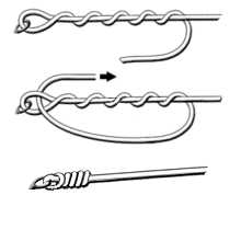 Можно просто сделать хирургическую петлю и скрепить ее с вертлюжком способом петля в петлю.
