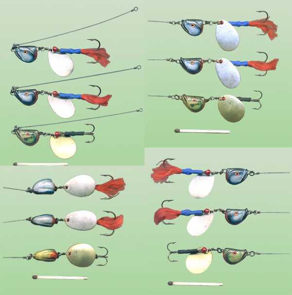 На вертушке с задней огрузкой (фото 2) неплохо было бы украсить тройник мушкой, твистером или кембиком. Такие приманки хорошо применять в не очень глубоких участках водоёма. Лучшее время для таких вертушек это весна и лето. Проводку следует делать медленно, а в период жора абсолютно без разницы. Хотя если в период жора делать быстрые проводки, то ваш садок, скорее всего, наполнится быстрее!
