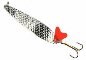 Под лепестком находится груз (сердечник) и тройной крючок. Такая приманка мало напоминает наживку, однако привлекает щуку за счет звуковых волн, которые создает вращением.