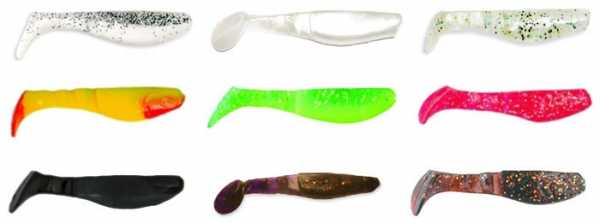 Рыбки. Рыбки – это промежуточный класс между виброхвостами и слагами. Это, как правило, пассивный силикон. Основная тенденция, это имитация небольшой рыбки, малька. Зачастую, стараются приблизится к максимальной реалистичности, сделать приманку точь-в-точь похожей на малька, сделать ее естественного цвета, полупрозрачной, с четкой прорисовкой глаз, жабер, чешуи и раздвоенным хвостиком. В прочем, это не обязательно. Есть рыбки, также условно похожие на живой прототип, как и виброхвосты.