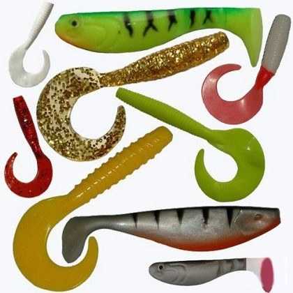 в 10-12 см, как наиболее универсальном. - Цвет твистеров чаще всего ярких тонов и оттенков. Выбор по цветовой гамме богат, а вот уловистость зависит от конкретного водоёма и погоды! Правила выбора цвета те же, что и с воблерами — чем погода пасмурнее, чем темнее дно водоёма, тем ярче должен быть цвет. Многие рыбаки советуют белые, серебристые, жёлтые и золотистые цвета, а вот синие и зелёные — не очень, но это предположение всё же спорное. Только опыт рыбной ловли на конкретном водоёме, именно на конкретном водоёме, позволит выбрать наиболее уловистый твистер.