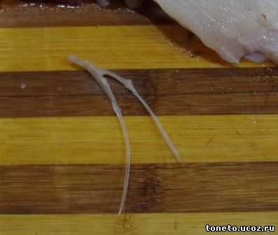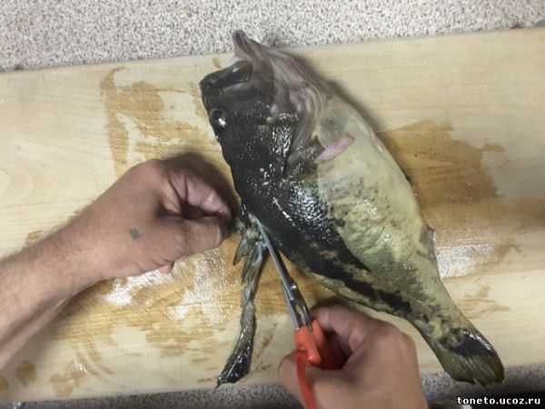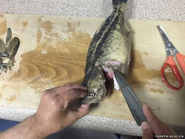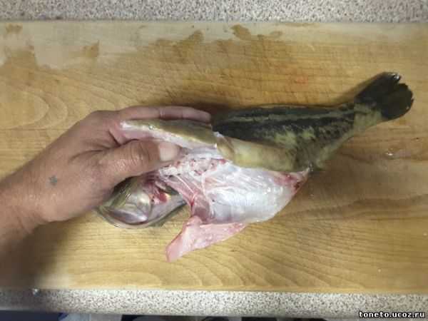 - Острым ножом распарывается рыбное брюхо. Все внутренности тщательно вынимают;