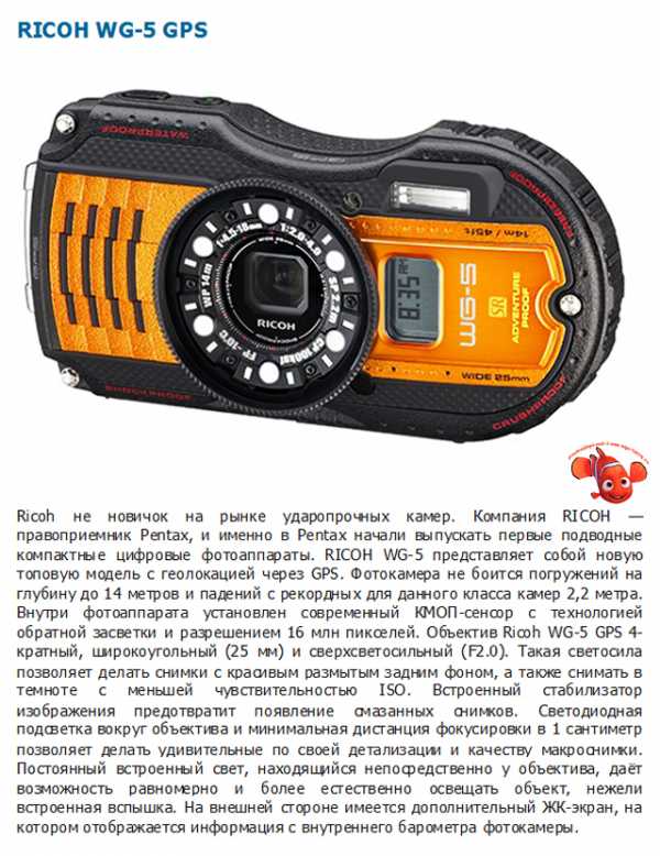 Японская компания Ricoh известна своей техникой уже давно, но не всегда их модели вызывают бурный восторг. К примеру, водонепроницаемый фотоаппарат WG-5 GPS. В нем вроде бы все хорошо, но пользователи отмечают наличие большого количества недоработок, которые не позволяют в полной мере насладиться качеством продукции. Лично мы ничего подобного не заметили.