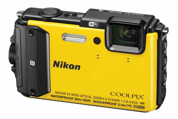 Мы не можем забыть о таком гиганте по производству качественных фотоаппаратов как фирма Nikon. Водонепроницаемый фотоаппарат Coolpix AW130 способен выдерживать погружение на глубину до 30 метров, пока это лучший показатель на сегодня, но вам может и не пригодится эта функция, если не стали профессиональным дайвером. Уже стандартное для многих камер: выдерживает падение с 2 метровой высоты и работы в мороз -10°C. Модули GPS, ГЛОНАСС и QZSS помогут вам отследить места съемки. Еще одним интересным дополнением является наличие карты мира, которая позволит быстро и точно отметить место, где была сделана фотография. Экран сочный и яркий, с антибликовым покрытием. Оптический зум является 5-ти кратным, в принципе это хороший показатель для камеры таких компактных размеров. При помощи цифровых технологий можно увеличить до 10, но немного теряется качество изображения. Матрица имеет функцию обратной подсветки, что позволит делать фотографии в условиях низкой освещенности. Данные датчика давления, указывающие высоту или глубину, отображаются на экране фотокамеры во время съемки; их также можно добавить к изображениям. Также есть функция распознавания улыбки, смягчение тона кожи и отслеживание моргания. Все эти параметры делают подводный фотоаппарат одним из лучших на сегодняшний день. Но пользователи отмечают, что использовать этот гаджет для повседневной съемки не годится, качество фотографий не уступают качеству снимков на современный смартфон. Поэтому советуем изучить устройство перед покупкой, оценить в магазине.