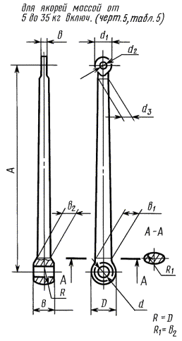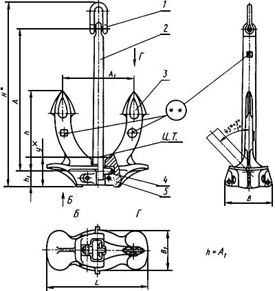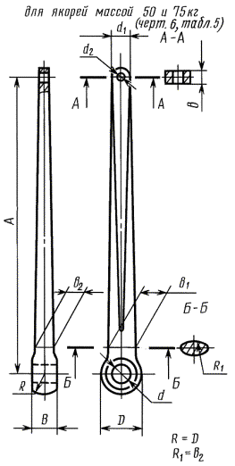 - приливы (боковые штоки), не позволяющие якорю опрокинуться;