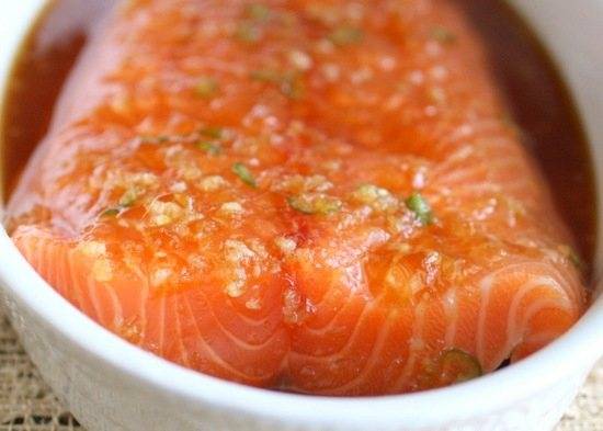 Разогрейте жаровню. Достаньте лосося из маринада и положите на жаровню или в неглубокую металлическую форму для запекания.Жарьте на расстоянии 6 дюймов от источника тепла, пока лосось не станет золотисто-коричневым на поверхности, не подрумянится по краям и не прожарится до желаемой степени готовности, примерно от 6 до 8 минут, в зависимости от толщины.