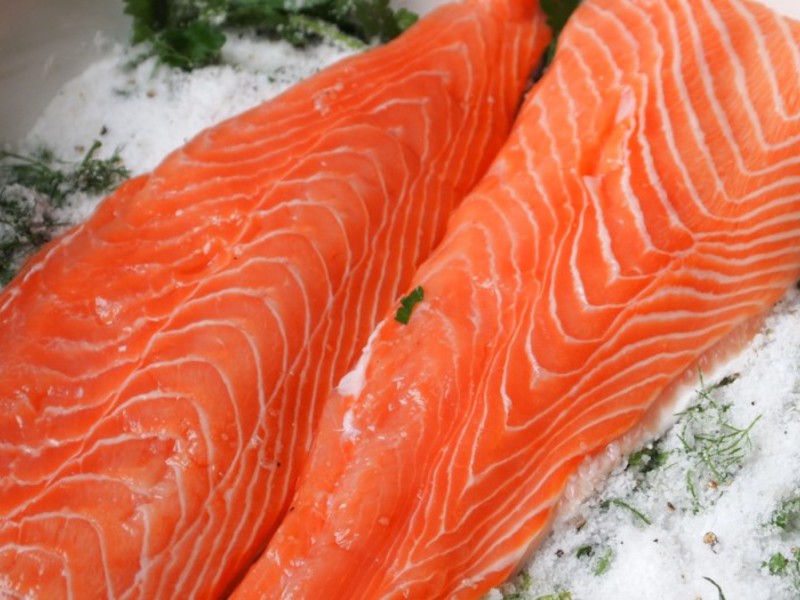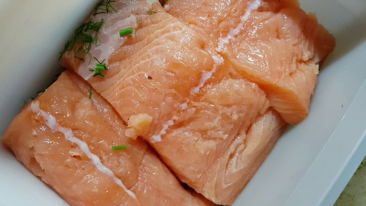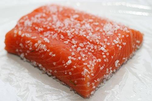 Лосось берите охлажденный, — в такой рыбы гораздо больше полезных веществ, чем в замороженной. Хотя существует мнение, что при заморозке в рыбе погибают все бактерии и микроорганизмы, которые могут быть опасны для человека, и такую рыбу без опаски можно солить.