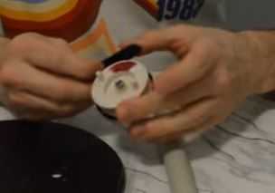 - Стальная упругая проволока прикрепляется к верхней части пластиковой трубки, точно таким же образом, как и нижняя часть с той лишь разницей, что вместо самореза, заглушка прокалывается стальной проволокой. Чтобы облегчить эту операцию, можно предварительно сделать в заглушке отверстие меньшего размера, чем диаметр проволоки. На проволоку также наносится тонкий слой клея, чтобы исключить самопроизвольное выскальзывание проволоки из заглушки.