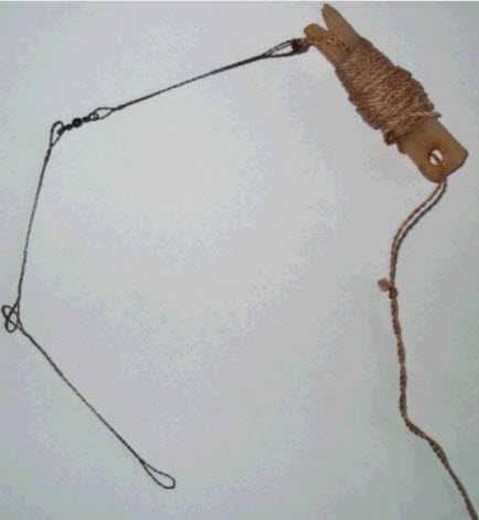 • Теперь леска. В качестве таковой модно использовать как непосредственно леску, так и капроновую нить. Толщину лески нужно подбирать исходя из того, что снасть на хищника.
