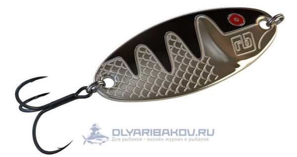 Короткая и широкая колебалка от именитого производителя. На проводке показывает размашистую игру, которая отлично привлекает щуку.