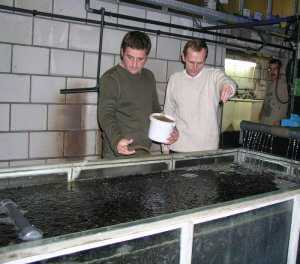 Все работы по уходу за подрастающей стерлядью сводится к регулярному кормлению рыбы и поддержанию воды в бассейнах в приемлемом состоянии (своевременная очистка и насыщение кислородом).