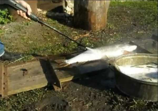 - Тушка тщательно промывается в проточной воде, так из-под чешуи вымываются грязь и слизь. Затем её немного просушивают, чтобы не скользила.