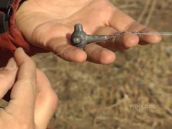 - ждем, пока грузик упадет на дно, и начинаем по чуть-чуть его подматывать;