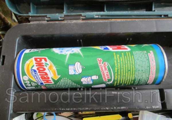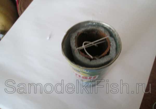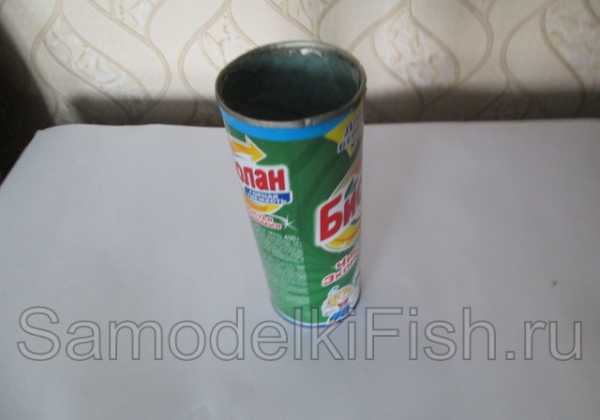 Сначала подготовим футляр для поводочницы. Для этого возьмем банку из-под чистящего средства и вырежем консервным ножом крышку с той стороны, где из нее высыпался порошок (кстати, такая емкость применяется и для некоторых видов чипсов). Затем плоскогубцами или молотком убираем заусенцы и тщательно промываем банку от остатков средства. Футляр, в принципе, готов. Его предназначение – защита поводков от случайного обрыва.