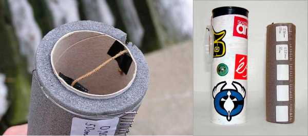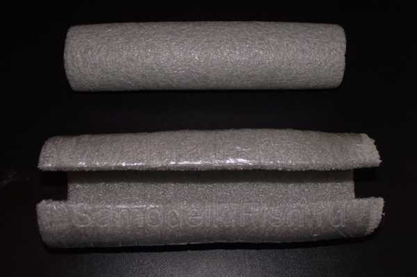 Теперь нужно подобрать подходящий по диаметру и длине пластиковый цилиндр, чтобы после наклейки уплотнителя, он свободно помещался в футляр. Под размер нашей банки идеально без дополнительной подрезки подошел цилиндр от малярного валика. Можно воспользоваться трубой ПНД, подобрав подходящий диаметр для имеющегося футляра.