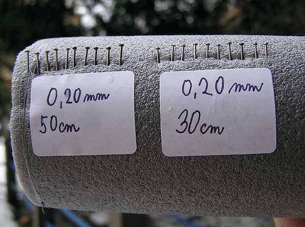 Поводки можно наматывать группами, в каждую группу должны входить поводки одинаковой длинны, чтобы не делать лишних наклеек с записями. На наклейках следует отмечать длину поводков, а также диаметр лески.