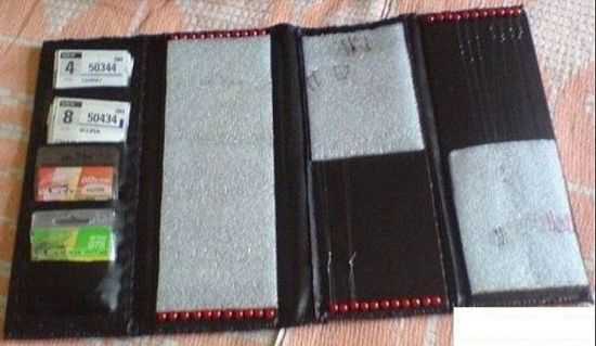 Внутри данного аксессуара имеются пластиковые фиксаторы для крючков. Также есть специальный ремешок, под которым помещаются небольшие коробочки с мелочёвкой.