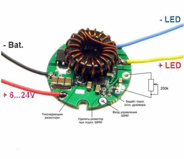 Затем, припаял провода от диода и диммера к драйверу. Напаял по 10 см, чтобы не возникло проблем с установкой.