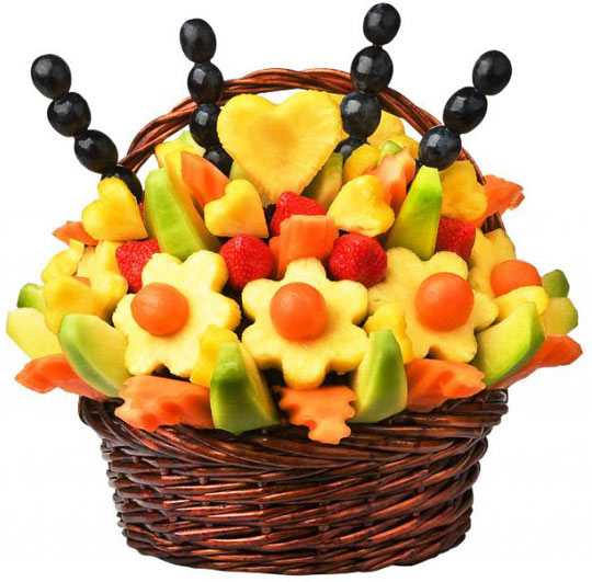 Рядом поставьте плетеные корзины, наполненные ананасами, бананами, кокосами и манго. Они создадут тропическое настроение. Тут не стоит забывать про популярные шпажки. Они добавят красок вашим блюдам. И, в целом, фруктовые композиции очень освежат стол и сам праздник.