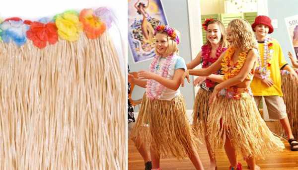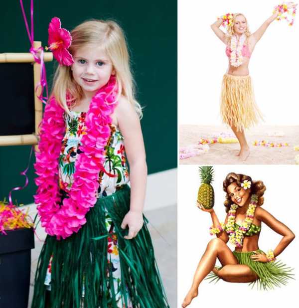 Вы будете неотразимы на гавайской вечеринке, если наденете юбочку из рафии (сухой травы), красиво украшенный цветами топ и, конечно же, бусы-леи, сделанные своими руками.