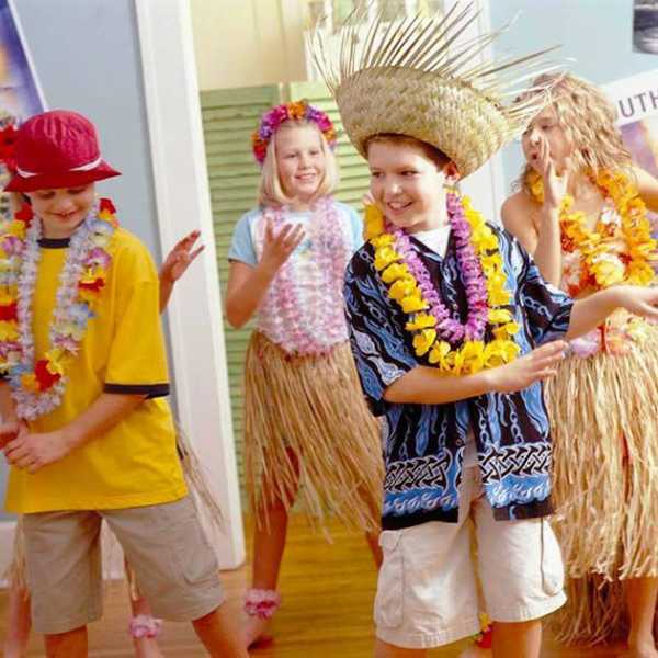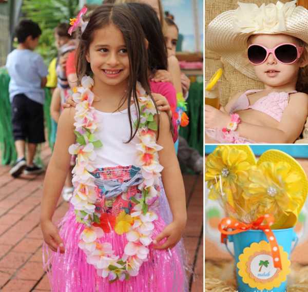 Для гавайской вечеринки важна одежда. Если есть возможность провести праздник у бассейна, то конечно, одежда будет купальная. Если нет – предложите имениннице или имениннику сделать для своих друзей леи – незаменимое украшение на гавайском дне рождении.