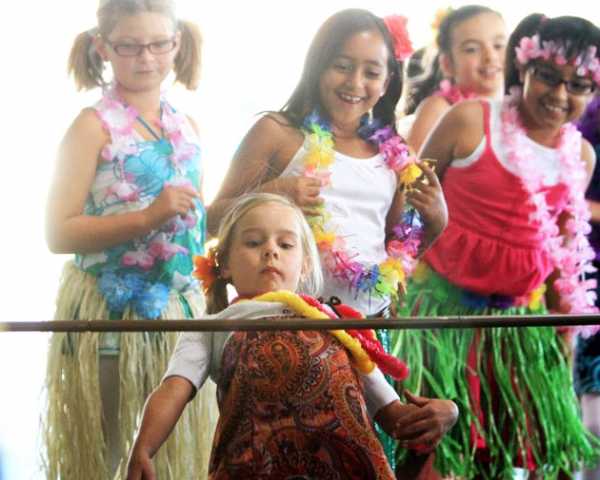 Самая популярная гавайская игра – “Лимбо”. Для нее понадобится шест или канат, украшенный ленточками и цветами. Под музыку дети проходят под этим канатом. Когда все дети пройдут один раз, планка опускается ниже. Главное условие – проходить под канатом надо, наклоняясь только назад, а не вперед. Выигрывает самый гибкий участник!