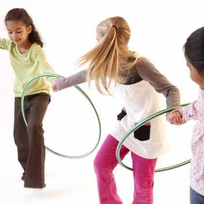 Еще для игр можно приготовить обручи. Обернуть их яркой блестящей бумагой и придумать различные командные задания. Например, пройти через препятствия, крутя обруч на талии или на двух запястьях одновременно. Можно разложить обручи на полу и прыгать в середину или поставить обручи так, чтобы игроки перелезли через них. А еще предложите встать всем в круг и держаться за руки. Затем проденьте обруч через первого участника, и дальше обруч должен пройти весь круг до конца. Можно пустить не один обруч, а два и больше, сколько есть в доме.