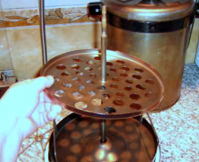 Можно ставить на огонь. Пламя должно быть сначала в течении 2-3 минут интенсивным, а затем чуть меньше среднего, температура внутри нужна не выше 70-85 градусов. Если появится дым, то винт наверху подкрутить посильнее.