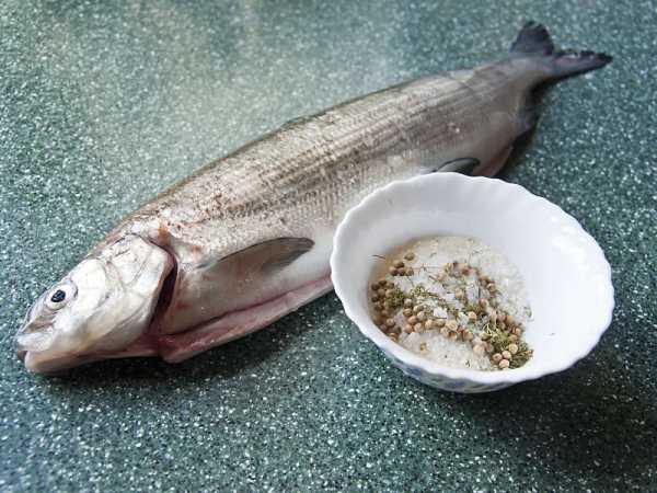 Перед началом засолки тушки рыбы требуется тщательно вымыть. Потом рыбу обильно натирают крупной солью снаружи и изнутри, если рыба потрошёная. Количество соли можно не ограничивать; не стоит беспокоиться о том, что рыба станет «слишком солёной» – она впитает соли ровно столько, сколько «в самый раз», а не чрезмерное количество. В соль можно добавить специи — молотый перец, гвоздику, кориандр и так далее по вкусу.
