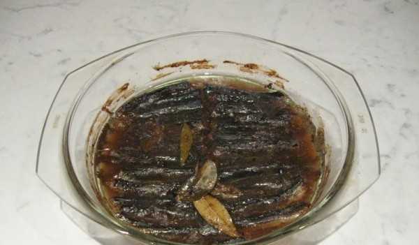 - По истечении указанного времени снимаем сковороду со шпротами с плиты и оставляем на время, пока полностью не остынет рыба.