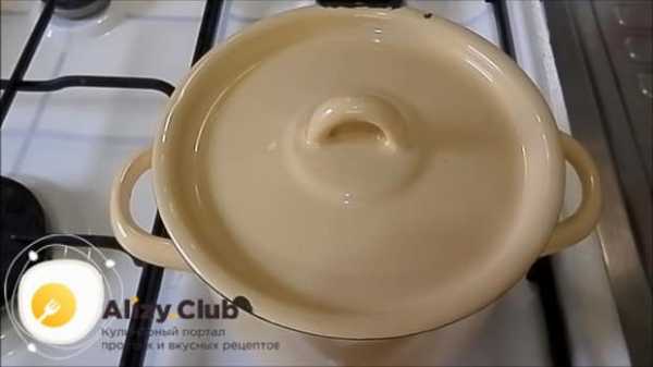 - Дождись, пока все закипит, и убавь огонь до самого слабого, закрой сковороду крышкой