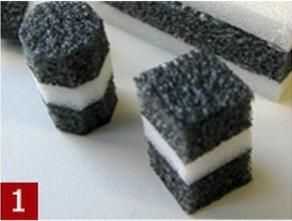 Нужно нарезать квадратиками наш пенополиуритан и сложить его бутербродом из разных цветов.