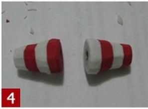 В один конус вставляем трубочку, полученную из ватной палочки для ушей. Лишнее можно оплавить и таким образом зафиксировать ее внутри.