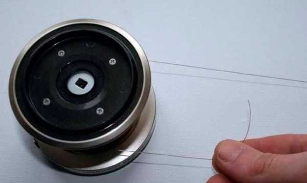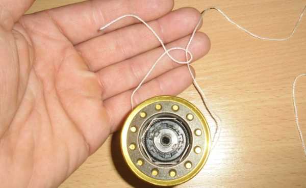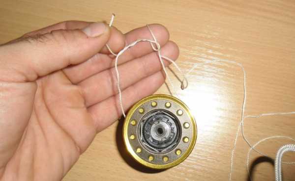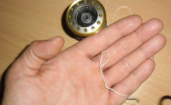 - Огибаем шпулю леской. Длина свободного конца — на ваше усмотрение, главное, чтобы было удобно.
