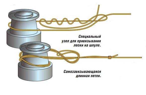 Практически все узлы, используемые для привязывания лески к шпуле, должны быть самозатягивающиеся.