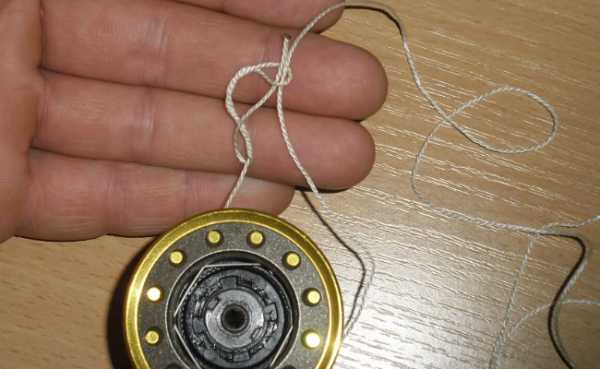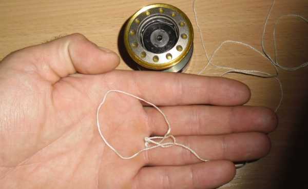 Примите к сведению, что узел желательно сместить к нижнему борту шпули. Это позволит виткам ложиться ровно.