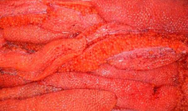 Можно ястык разломать на 4–6 кусков и осторожно выбрать икру пальцами, чтобы не давить икринки. Если они вызрели хорошо, то сами вывалятся в подготовленную емкость.