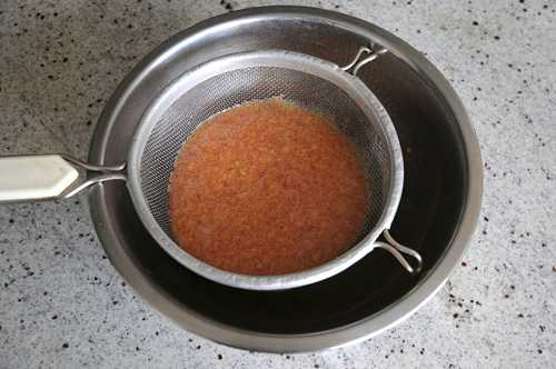 Эффективен и способ очистки миксером, с помощью дуршлага. Продукт также процеживают сквозь мелкое сито и промывают до чистой воды Руками убирают небольшие частицы плёнки.