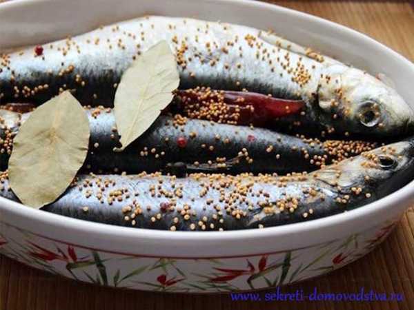- Залейте тушки закипяченным со всеми добавками и остуженным рассолом. Прямо в банку, сверху всыпьте 1 ст. ложку сухой горчицы. Готова рыба будет спустя 2 – 3 денька.