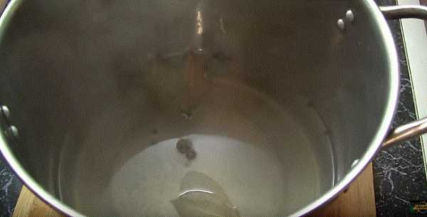 2. Довести воду до кипения. Всыпать соль и специи, кипятить 3-4 минуты и выключить огонь. Дать рассолу остыть.
