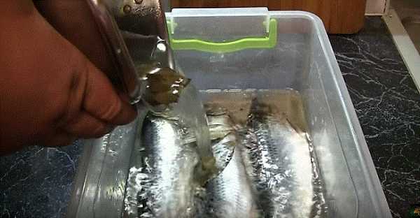 3. Добавить в воду масло. Рыбу выложить в стеклянную или пластиковую емкость и залить ее рассолом. Закрыть крышкой.
